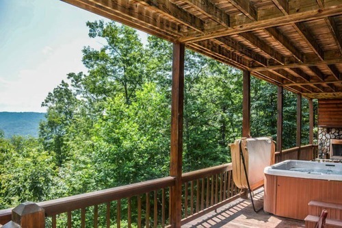 Cohutta Sunset Cabin Rentals Of Georgia Hot Tub On The Covered Porch Overlooking Gorgeous Mountain View Hot Tub Outdoor Cabin Hot Tub Mountain Dream Homes